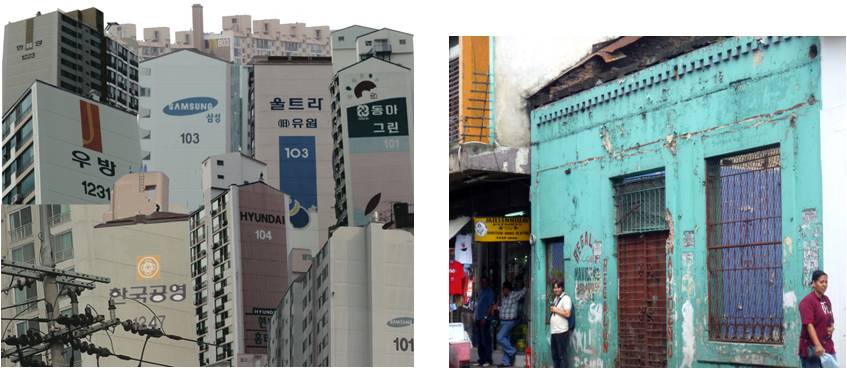 One of the things I first noticed getting out of Incheon International Airport was the uniform architecture. On the bus from Incheon to Cheongju, where I was to live, I felt rather underwhelmed by an expansive concrete jungle topped by red neon crosses. Every city has rows of apartment blocks, which are only distinguishable by a large number painted on the side. When in the centre, you’d be hard pushed to find the difference between a school, a plastic surgeon and a DVD room and, more often than not, all are housed in the same building, sharing the same lifts and stairways as the up and down way in every other building. Once you leave your town of residence, you find that little changes and that each town has exactly the same layout and offers little difference in atmosphere and personality, like an English “new town” from the late 60s I suppose. Korea does have its areas of natural beauty, but focussing purely on urban landscapes, I found little to inspire me.