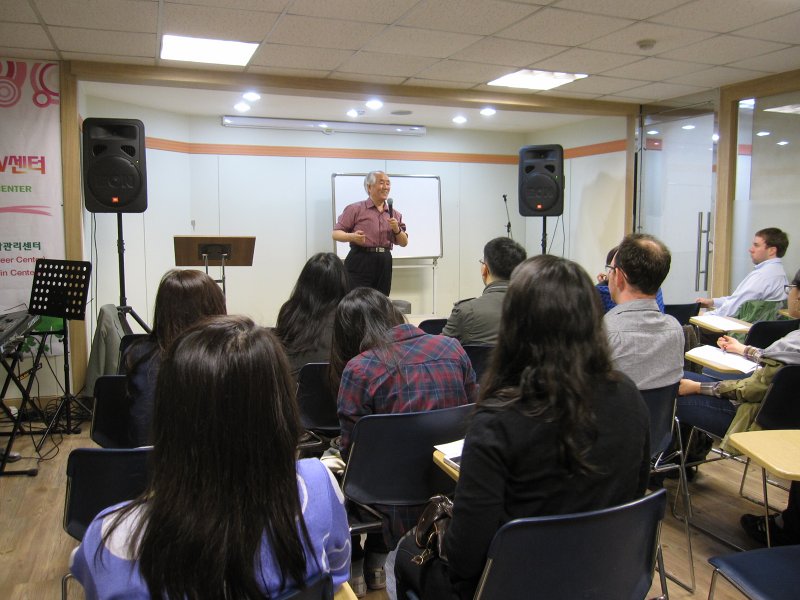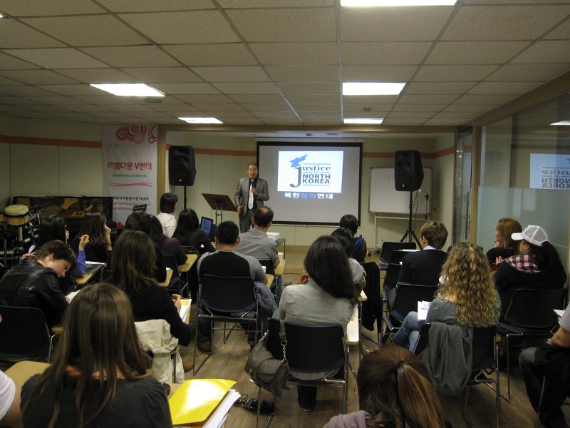 Gwang Cheol Park (a pseudonym he uses to protect his identity) told his story to a few dozen curious listeners in the basement of the KISES language hagwon, near the Sinchon subway station in Seoul on Saturday, May 7, 2011 as part of an all-day volunteer orientation workshop held by Justice for North Korea (JFNK), a grassroots volunteer-based activist organization which since 2007 has addressed the humanitarian crisis in North Korea by spreading international awareness as well as helping defectors escape their country to find better lives abroad.