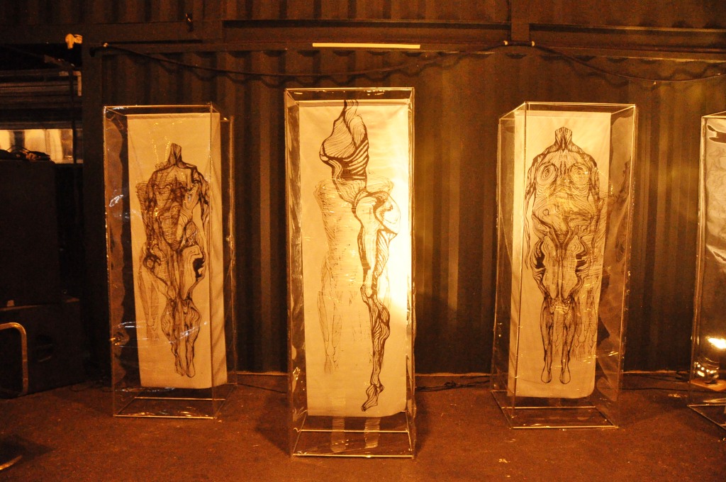 The Perfectly Beautiful Body. Four mannequins, draped with lacerated vinyl over sketched-on and somewhat contorted body stockings. That was it.