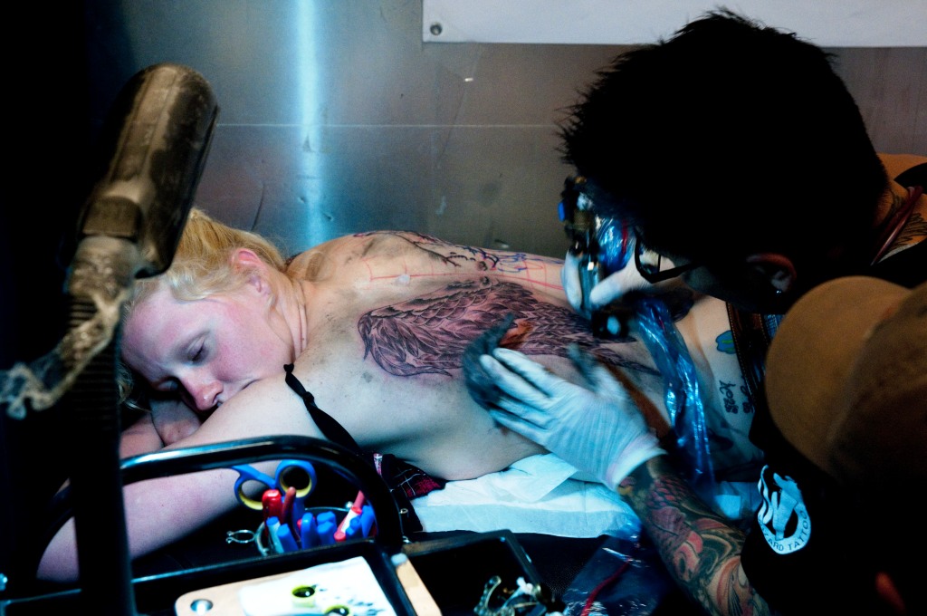 Everyone has fears. For some, it is heights. For others, it is something more unusual, like the fear of numbers. My own phobia is needles. I have always been deathly afraid of them. Which made getting travel vaccinations a humiliating and hilarious (for the doctor) experience. So I may not have been an ideal candidate to write about and shoot a tattoo convention in Seoul. However, I figured that being around experience tattoo artists would help me get over that particular bugbear.