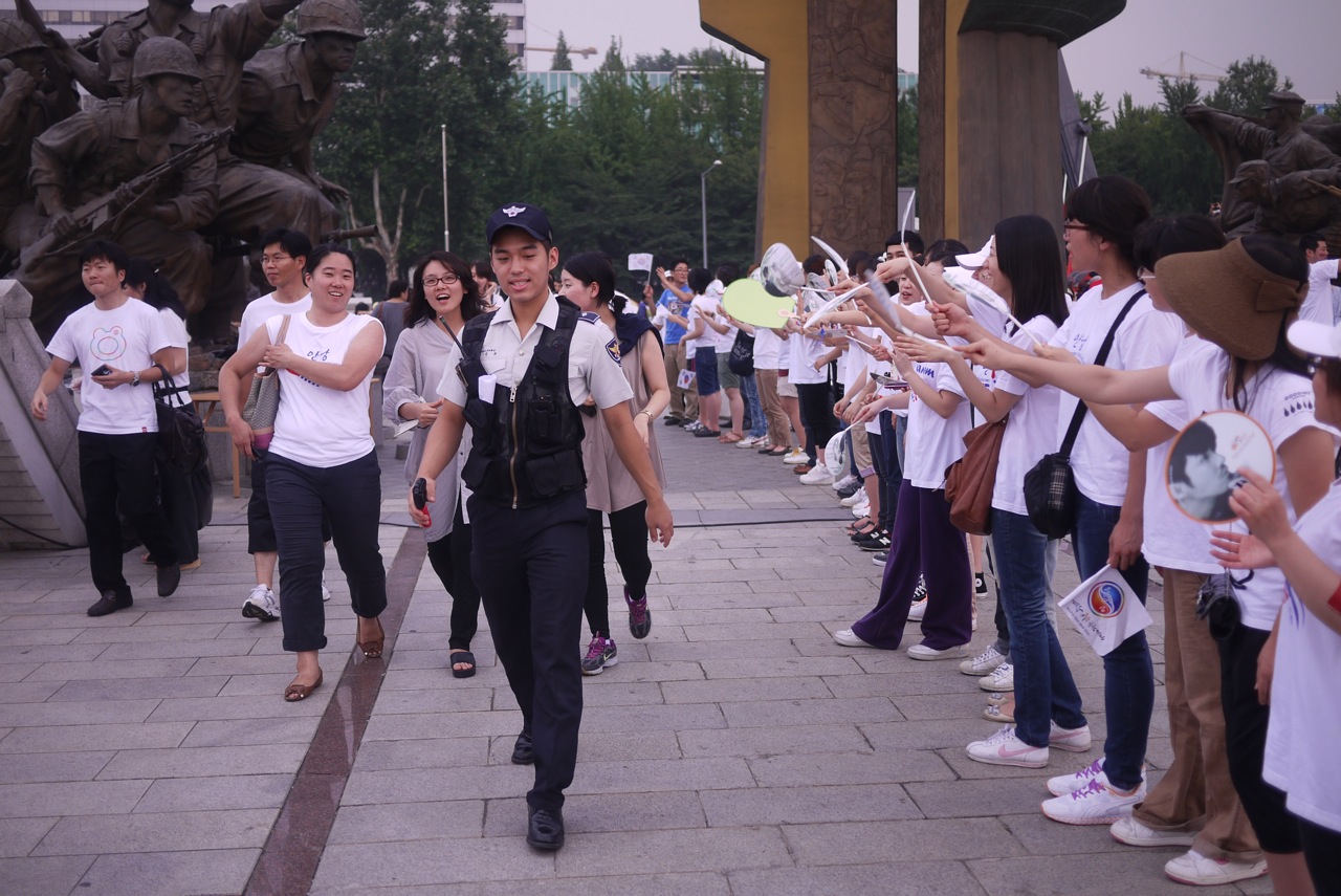 “Hello!” said two smiling Korean girls (women/girls?) who were standing with flyers and clipboards. They asked us if we knew about an event that was being held at The War Memorial on Monday, August 15th. We didn’t, but it seemed like it was going to be a huge celebration by the way they were going on about it. I remember words like,