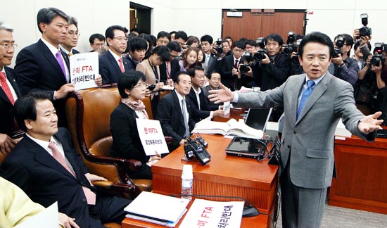 Additionally, the left, like the left in other developed countries, is plagued by factionalism. There are four major parties on the South Korean left: the Democratic Party (민주당), the Participation Party (국민참여당), the Democratic Labour party (민주노동당), and the New Progressive Party (진보신당). The Democratic Party has to cover it’s left flank, making opposition to the FTA necessary in order to present to the above mentioned constituencies with good reason to vote for the Democratic Party rather one of its moderate or more robust left-wing rivals.