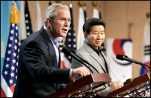 Which leads us to President Roh’s strangest undertaking: the FTA. Hailing from the left surely it is unspeakable heresy. And yet there it was, a Nixon in China moment if ever there was one. Actually, the logic of it is quite simple and what is even more simple is why his former comrade’s oppose it now, without any irony.