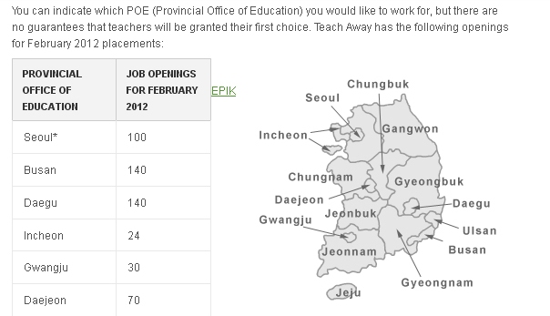 information on its Website that currently lists 100 open positions in Seoul for February 2012. According to the site, “the period of employment is for one full year (i.e. February 2012 to February 2013).”