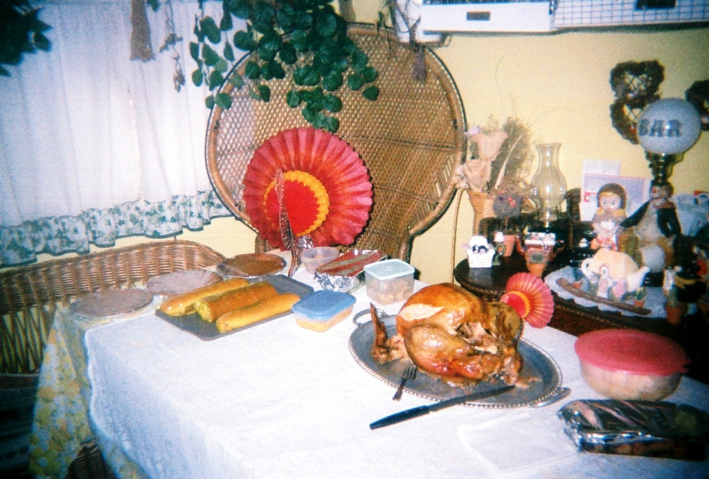 “Thank you,” she smiled, sweetly. “Now then, Thanksgiving was approaching, and I was particularly missing my family and friends and home and our traditional Thanksgiving meal. I was sure that I wasn’t going to find a Thanksgiving meal here in Korea, turkey not being a Korean standard. I could’ve tried to approximate with chicken or something. I probably could’ve emailed mom for her mashed potatoes recipe, and might’ve made something close to it, but it wouldn’t have tasted the same. I could’ve gone on a hunting expedition for some wild cranberries. I even could’ve gotten my brother to send me a box of instant stuffing mix in the mail.”