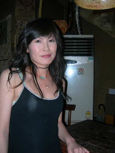 The Voodoo Bar is gone now and yet when it would open, was always an up-and-down spinning yo-yo and about as rock ‘n roll demented as Korea can allow. The patrons were part star struck with themselves (for knowing who The Dandy Warhols were) and bee hive drones in service to the unique bar owner. The curvy queen bee went by several names (Eun Ju, Miss Park, Sophia) and liked foreigners when they played up to her, told her Korea is great or her bar was the best in the world, and hated foreigners who brought up anything unfavorable about the place. The bathroom door had trouble closing and sometimes she would barge in while a man was pissing and reprimand him for not closing it properly. She would on wish and whim shut her bar for no apparent reason other than it was hers and she could and once her mood swung as freely as that bathroom door, there wasn’t a damn way to motivate her into staying open. To crack the code on who was who and why they are who they are in Sinchon, you had to look and look again. Look to the point of staring. By any western account of desire this woman was a MILF, yet bi-polar bordering on Dissociative Disorder. In Korea, there is one word that encapsulates her universe: Ajumma.