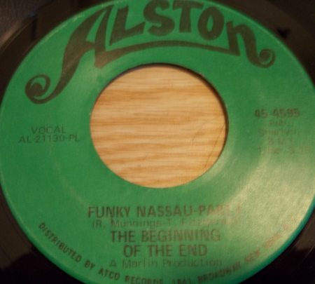 They recorded two LPs: Funky Nassau in 1971/72 and The Beginning Of The End in 1976. (I do have a copy of the Funky Nassau LP, but alas it is only a reissue. An orginial copy would go over $100. But the whole album does kick absolute butt and is worth tracking down!!!) Several singles were also released, mostly from their first album. “Funky Nassau,” the 45 you see here, was a hit single in the U.S., reaching #15 on the Billboard Top 100 and #7 on the Billboard Black Singles Chart.