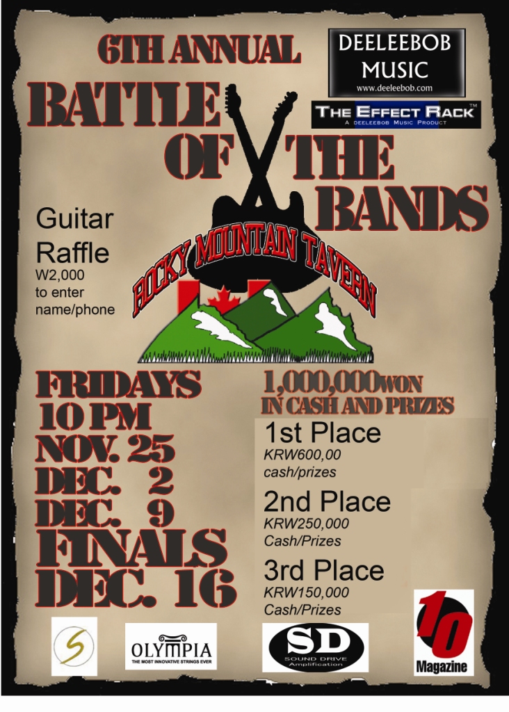 This year there will be a public guitar raffle– $2 to enter or KRW2,000. Also drink specials add $1 to your drink and enter the Raffle.